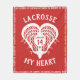 Un coeur cool fait de têtes de bâtons de crosse professe votre amour pour le sport. Customisez avec le nom et le numéro de votre joueur sur le ballon à l'intérieur du panier. Ajoutez votre nom d'équipe autour de la frontière. Faites un cadeau personnalisé pour un joueur de crosse, un entraîneur, une équipe, un joueur, une mère ou un fan. Disponible en rouge, orange, vert, violet, bleu, marron et noir. Ou changez l'arrière - plan pour qu'il corresponde à votre équipe. Produits correspondants disponibles.