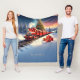 Beautiful Red Train Christmas Tree Holiday Fleece Blanket
