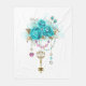 Clé d'or antique aux roses turquoise tendance décorée de feuilles d'or blanc et de perles rose et bleu. Couleur tendance. Rose turquoise. Blanc doré. Tiffany bleu.