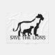 Sauvez les lions ! Cette oeuvre d'art présente un lion, une lionne et un lionceau de lion. Il y a aussi un autre design blanc avec un arrière - plan noir.