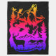 Une silhouette colorée qui met en valeur la faune, notamment un ours, un cerf et des oiseaux, contre un dégradé vif. Les thèmes de la nature sont mis en valeur par les arbres et les montagnes, créant une composition saisissante et artistique.
