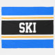 Cette conception sportive et sportive présente un texte SKI audacieux à l'intérieur d'une large bande noire surlignée avec deux bandes de course blanches et jaunes contre des bandes extérieures bleu vif. Le texte peut être personnalisé.