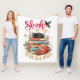 A festive and cheerful Christmas design showcases an adorable black kitten nestled on a stack of books. Beside the books are vibrant poinsettias, pine branches, holly berries, and a steaming cup of cocoa. Golden stars frame the scene, adding a magical touch. The colorful text reads, "'Sleigh all day, read all night." This delightful design is featured on a variety of products, making perfect gifts for book lovers.