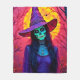 Couverture Polaire Sorcière d'Halloween avec conception de visage crâ