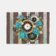 Couverture Polaire Steampunk Clock and Turquoise Roses on Striped
