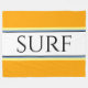 Ce design présente du texte SURF à l'intérieur d'une large bande blanche centrale surlignée de rayures noires, jaunes et bleues sur un arrière - plan jaune doré. Le texte peut être personnalisé.