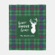 Cute home sweet home couverture de Noël vous pouvez facilement customiser en cliquant sur le bouton "Personnaliser", Avec silhouette de cerf et clan Duncan tartan en vert, et chèque violet. Parfait pour vos nuits douillettes pendant les vacances. Fait un grand cadeau