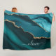 Couverture Polaire Teal Aqua Bleu Vert Agate Géode Monogramme Or