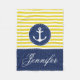 Couverture bleue et jaune nautique confortable avec le texte fait sur commande.
