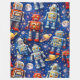 Prepare for a stellar snuggle session with this retro robot galaxy plush throw blanket featuring an incredibly charming all over print of vintage style tin robots drifting through a deep blue universe. This blanket is a nostalgic masterpiece watch these quirky mechanical friends float past glowing ringed planets craters on the moon and thousands of twinkling stars