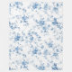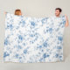 Soft fleece blanket with classic blue Toile de Jouy floral chinoiserie, blending vintage elegance with cozy comfort.