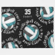 Cette couverture en polaire à thème de volleyball amusant dispose de 5 volleyball turquoise, noir et blanc arrangés aléatoirement avec le texte "Le terrain de volleyball est mon endroit heureux" en blanc encerclant chaque volleyball dans une police manuscrite décontractée, le tout sur un arrière - plan noir - les panneaux turquoise et noir de volleyball sont mélangés avec un motif floral artsy, girly pour un aspect texturé - son nom et son numéro de maillot sont personnalisables - par katz_d_zynes
