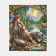 Sous un coucher de soleil doré, une Indienne, ornée de plumes vibrantes et de bijoux complexes, est assise au bord d'une rivière sereine, son fidèle compagnon de loup se reposant à côté d'elle