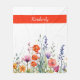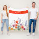 This vibrant watercolor wildflowers personalized fleece blanket showcases a pattern with lively mix of purple, orange, and red jewel-toned blooms, paired with sleek modern script typography.