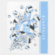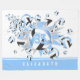 Cette ludique couverture polaire de volleyball de fille dispose d'une "explosion" de taille variée bleu clair, noir et blanc volleyball et de formes étoiles bleues, grises et blanches sur un arrière - plan blanc personnalisable - personnaliser avec le nom de l'athlète et le numéro de maillot - les panneaux de volleyball bleu et noir sont mélangés avec un kaleidoscopique floral girly motif pour un aspect texturé - par katz_d_zynes