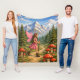 This whimsical illustration features a pink winged fairy hiking a trail surrounded by red toadstool mushrooms, pines and towering mountains. The storybook-style art captures a love for nature, adventure, and magical daydreams. This soft and cozy fleece throw blanket is perfect for those who love fairycore style, cottagecore art, and fairytale designs that feel nostalgic and magical. | The matching throw pillow is available in my store.