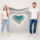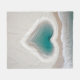 A heart-shaped pool of water with aqua hues is nestled within a sandy beach, surrounded by foamy waves. The ocean meets the shore in the background, creating a serene and romantic scene.