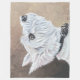 West Highland White Terrier, Westie levant les yeux, en profil avec arrière - plan brun. Benji. Copyright © 2025 Angi Laframboise. Tous droits réservés. Le chien d'art brasse des cadeaux pour les amoureux de les chiens.
