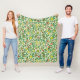 Fleece Blanket dans un William Morris Art nouveau motif de citrons, grenades et pêches, avec fleurs, sur branches feuillues - fruits en jaune et corail orange, avec feuilles verts, contre un arrière - plan à motifs, jaune et blanc