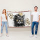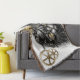 An intriguing looking pussy cat wearing a leather hat with steampunk brass on it. A golden feather tops the cock-eyed hat. This beautiful feline is wearing a golden or amber lensed monocle giving one eye a bronze tone, Around the cats neck hangs a brass trinket of some kind adding to the overall Steampunk attire. Brass cogs of the Victorian Technical era surround this intelligent looking feline.