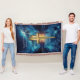 Croix d'or parmi les étoiles sur les eaux calmes avec la conception typographique.