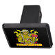 Le sapeur-pompier entièrement habillé dans la vitesse de lutte contre l'incendie tenant une hache du feu est couvert en cendres ! Grand texte rouge et jaune de sapeur-pompier ! Arrière - plan rouge et jaune flamboyant de bouclier ! Cadeaux fonctionnants durs de sapeur-pompier ! Veuillez soutenir nos sapeurs-pompiers !