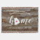 Montrez votre fierté pour votre état avec cette couverture jeté en planches de faux bois rustique mignonne avec le mot "home" en lettrage calligraphié blanc, avec une carte silhouettée de l'état de Rhode Island à la place de la lettre "O". Une illustration de cœur rose à l'intérieur de la carte de l'état complète le design ; vous pouvez changer la position du cœur pour votre ville natale en ouvrant l'outil de conception et en faisant glisser la forme de cœur vers votre endroit préféré. Personnalisez avec votre ville natale, le nom de votre famille et l'année de fondation pour créer un cadeau de pendaison de crémaillère parfait et mémorable ou un ajout à votre nouvelle maison.