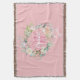 Une couverture jetée chic rose jolie avec un monogramme initial, comportant un beau nom en écriture blanche avec une initiale de nom de famille en écriture rose qui est encadrée par une guirlande de roses florales aquarelle sur un fond rose pêche. Personnalisez pour créer un cadeau souvenir spécial à chérir ! Conçu par Thisisnotme©