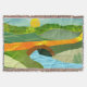Paysage Abstrait d'une rivière passant sous un pont de pierre avec des collines et une route dorée aux couleurs et textures audacieuses.