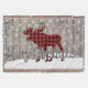 Ajoutez un peu d'humour rustique à votre décor de maison de vacances avec ce Joyeux Noël! jetez une couverture qui comprend une grande orignal en rouge et noir Buffalo Plaid debout sur des collines blanches de neige. Il y a un motif en bois d'écorce derrière l'orignal avec beaucoup de flocons de neige blancs qui tombent. Les mots "Joyeux Noël !" apparaissent dans la partie inférieure de la couverture en noir et blanc. Jetez ceci à l'arrière de votre canapé pour donner à vos invités un coup de rire et en invitant à la détente.