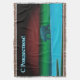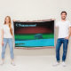 Un ours polaire arpente la glace pendant la longue nuit polaire; les aurores boréales en rouge et vert au loin. La lecture de test "S Rozhdestvom" (Un salut de Noël russe) apparaît en bleu et blanc éclatant.