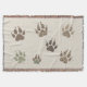 Bring a sense of fun and adventure to a child's bedroom or playroom with this charming safari paw print design. The neutral, textured background provides an earthy foundation for a scattering of playful animal tracks. Each paw print is uniquely patterned with elements like leopard spots and zebra stripes, featuring the signature muted, gender-neutral colors of our collection. This throw blanket is a fantastic addition to your decor, perfect for a modern, boho, or jungle-themed space. Part of our coordinated 'Kid's Safari Decor' collection. Note: design adapted from generative content.