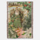 Santa Claus de Noël - Cette image antique est un collage collé d'une ancienne carte de Noël antique des années 1800. Le Père Noël a son sac de jouets, un arbre de Noël et beaucoup de décorations le soir de Noël
