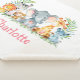 Aquarelle Safari Bébé Animaux Couverture bébé. Les bébés animaux comprennent l'éléphant, le singe, la girafe, le rhinocéros, le zèbre et le lion sur les feuilles de fougères. Aquarelle Botanique Verdure. Texte rose. Ajouter un nom.