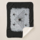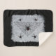 Cette couverture en toison Sherpa est noire avec un faux look peint en blanc au centre avec une toile d'araignée noire triangulaire qui a des araignées noires avec des marquages en verre d'ourle rouge.