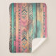 Couverture Sherpa Aztec Sud-Ouest Bleu Et Tribal Rose