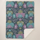 Cette couverture Sherpa présente des fleurs dans les tons violet, bleu et vert olive entourées de frondes de fougères violettes muettes et de feuilles sur un arrière - plan bleu foncé.