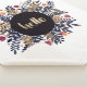 L'illustration est faite d'aquarelles et de gouache sur papier. Indigo, ocre et orange feuillage et fleurs avec un bonjour doré écrit à la main au milieu.