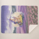 La couverture est une pièce charmante avec une image fantaisiste d'un château d'imaginaire dressé contre un riche champ violet. Il peut faire partie d'un ensemble cadeau de charme conçu spécialement pour les filles, combinant confort et imagination dans un bel ensemble