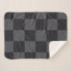 Cette couverture en sherpa foncé est ornée d'un audacieux motif géométrique, d'un célèbre damier croate en noir et gris.