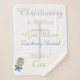 Elégant Bébé Christening garde une couverture de taille moyenne avec croix d'argent peinte à la main au centre avec l'apparence des accents d'or. Personnalisez avec les prénoms et les prénoms du bébé en bleu, et la date du baptême en argent. Le Christ, Dieu Béni, Enfant de Dieu est écrit en écriture argentée. Petit bébé garçon élégant rattle est sur le fond gauche de couverture avec étoile bleue, l'apparence de la parties scintillant et jolie arc bleu perlé. L'amour est écrit en texte blanc à l'intérieur du bétail. Une belle couverture en toison ferait un cadeau spécial pour bébé gardien pour bébé garçon, filou. Idéal pour afficher des images chères sur votre réfrigérateur, chevalet, classeur, etc. Oeuvre et design graphiques d'origine © TamiraZDesigns.