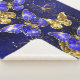 Composition des luxueux papillons saphir et bijoux en or sur arrière - plan bleu texturé.