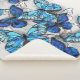 Vertical composition of réalistes, blue and white morpho butterflies on gray textured background. Morphine bleu.