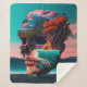 Un crâne a été complètement coloré dans un style abstrait pour vous transporter dans le monde de la créativité et du design surréaliste, dans le style de paysages photo-réalistes, de paysages tropicaux, de réalisme futuriste, de réalisme pixellisé, de cramoisi clair et de bleu ciel, de paysages oniriques surréalistes
