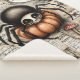 Creep & Curiosity - Le Citrouille Perch Sherpa Blanket Une araignée noire furieuse au visage crânien et aux grands yeux caricaturaux perche au-dessus d'une lugubre jack-o'lanterne, ancrant une scène grouillante d'enchantement d'Halloween. Autour, on trouve des silhouettes de maison hantées, des bouteilles de potion, des champignons et un compagnon de squelette, tandis que des chauves-souris et des figures fantomatiques dérivent dans un décor parchemin. Des manuscrits et des notes manuscrites apportent une touche gothique, mêlant mystère, magie et effroi ludique dans un tableau richement détaillé.