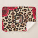 Élégante, petite et douce couverture sherpa empreinte de léopard avec de belles roses rouges accentuées de pétillants dorés et votre image spéciale téléchargée fait un grand cadeau pour un proche, meilleur ami, ou pour vous-même d'ajouter une photo chère et profiter d'une journée fraîche et comme une pièce d'accent à un coin salon confortable.