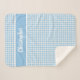 Couverture Sherpa En vichy bleu et blanc avec nom