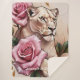 A realistic tattoo of a lioness holding a rose with a long stem, blending strength and beauty. Subtle gold accents highlight the rose, set against a soft textured background for a refined, powerful look. "Original Image was generated by Meta AI. AI generated artwork. Licensed under CC BY-SA 4.0.