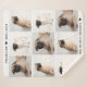 Une belle et confortable couverture personnalisée de mémorial pour animaux de compagnie pour honorer la mémoire d'un membre de la famille adoré de la fureur. Le design moderne et simple comprend un collage photo de neuf (9) photos en forme de carré avec le nom de votre chien, leur durée de vie ou l'année où ils sont morts, des détails de conception du coeur, et une citation personnalisée - la citation par défaut est "Pour toujours dans nos coeurs". Des couleurs blanches neutres et noires peuvent être customisées.