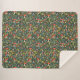 Motif à thème Whimsical vert et rouge boisé conçu par Shelby Allison avec de minuscules personnages de gnome, champignons, fleurs et feuillage.